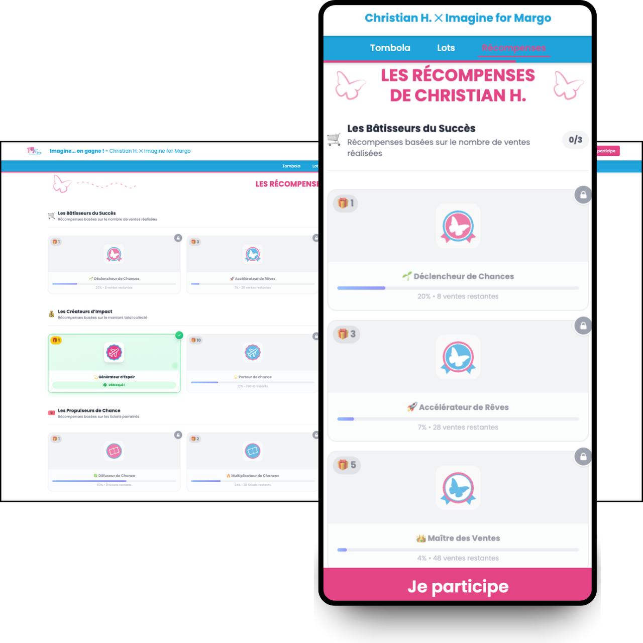 Seit 2021 hört GoTombola auf die wirklichen Bedürfnisse der Verbände. Auf diese Weise haben wir die digitale Transformation des Sektors unterstützt, indem wir unser Tool entwickelt haben, um den tatsächlichen Erwartungen unserer Kunden gerecht zu werden. Aus einer einfachen anpassbaren Seite zu Beginn haben wir eine vollständige Plattform mit verbundenen Tickets, transparenten Ziehungen, automatischen Benachrichtigungen und einem Botschaftersystem entwickelt. Diese Funktionen ermöglichen es Ihnen, Zeit bei administrativen Aufgaben, Bargeldabwicklung und der Kommunikation mit Ihren Teilnehmern zu sparen. Das bedeutet, dass Sie sich auf das konzentrieren können, was am wichtigsten ist: Die Mission Ihrer Organisation und die Unterstützung Ihrer Begünstigten.